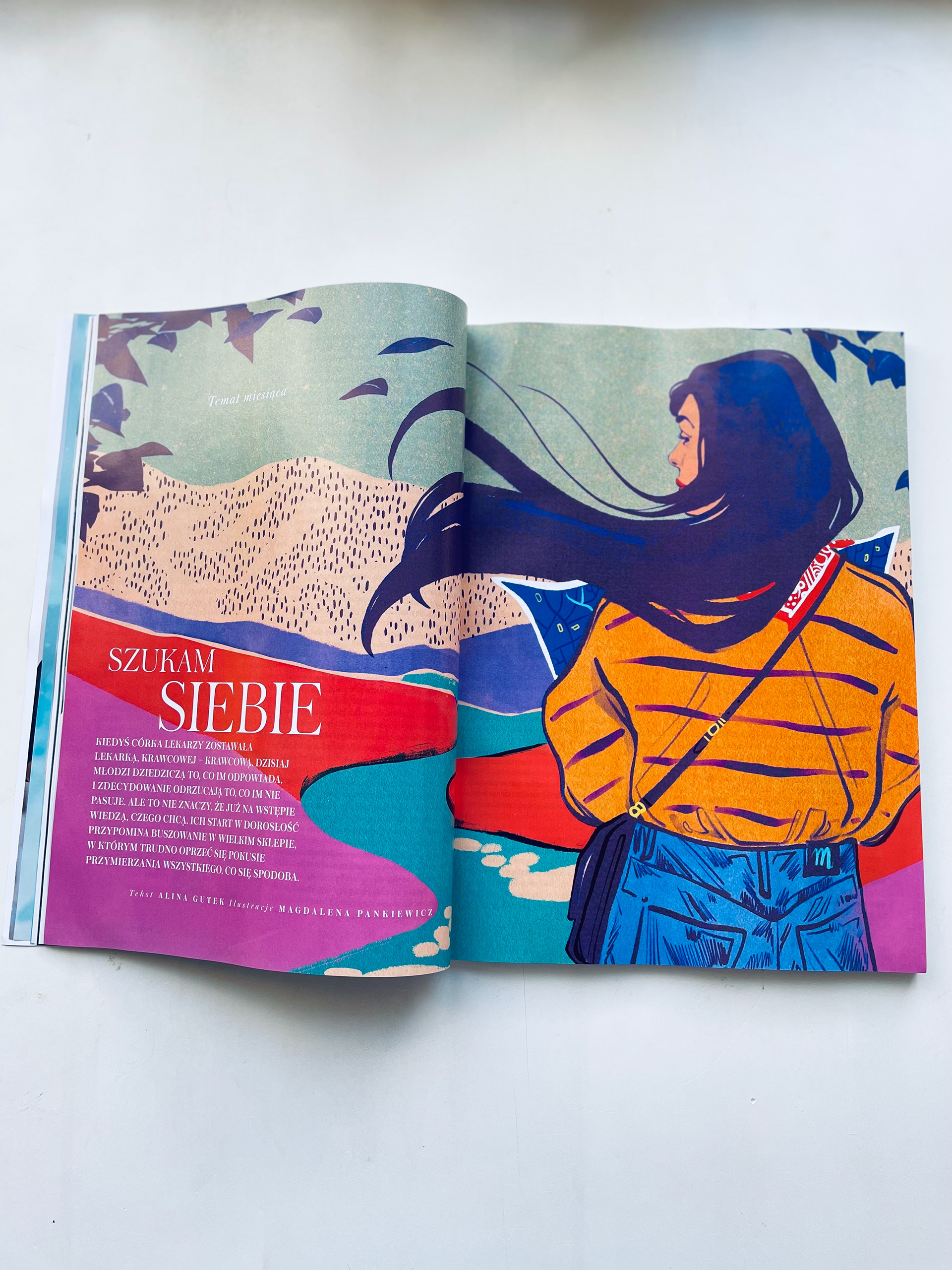 Editorial illustrations for Zwierciadło magazine. An article about the long way of exploring and the process of self-seeking.